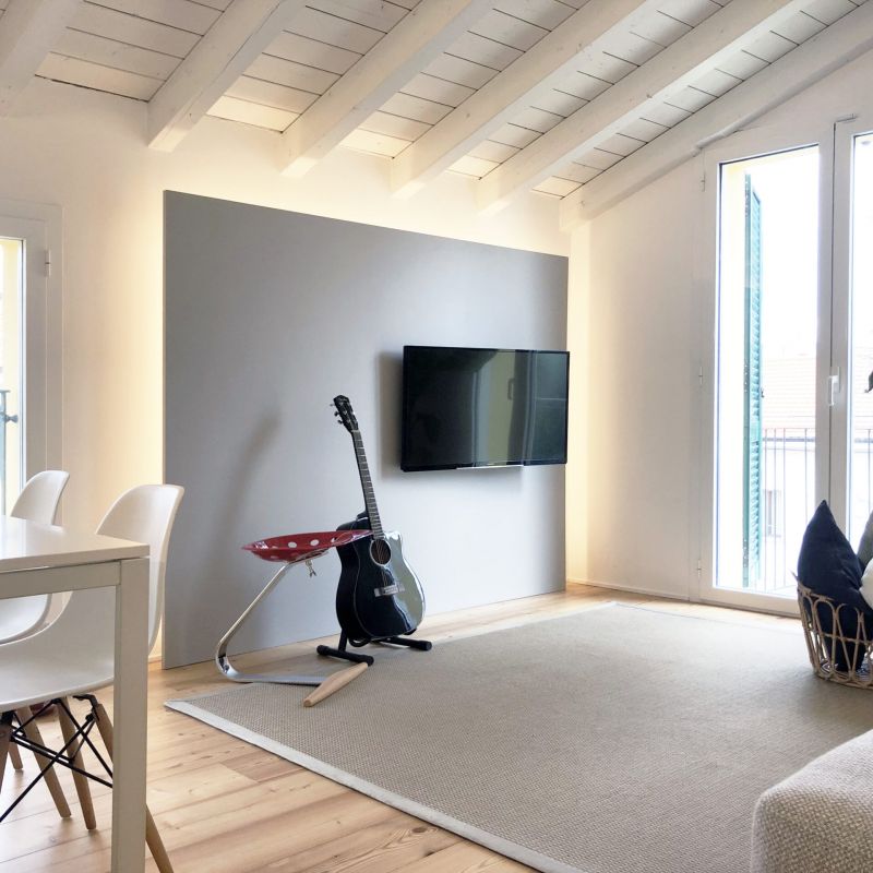 Poche lampade decorative iconiche si uniscono a un’illuminazione LED nascosta, essenziale ed estremamente funzionale.